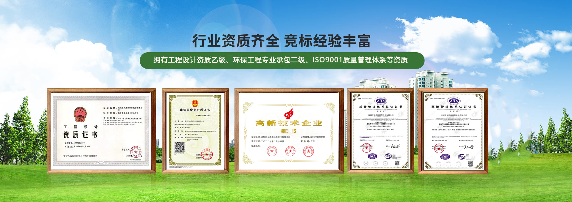 • 具備環(huán)保工程專業(yè)承包二級資質、建筑機電安裝工程專業(yè)承包三級、工程設計資質(大氣/固廢乙級)等資質齊全